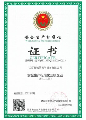 江蘇省誠信教學設備有限公司成立于2003年,是一家專注教學設備研究開發(fā)、生產制造、銷售服務為一體的綜合性教育、服務型企業(yè),是江蘇省教育設備行業(yè)協(xié)會會員單位、中國教育裝備行業(yè)協(xié)會會員單位,公司先后通過ISO9001國際質量管理體系認證、IS14001國際環(huán)境管理體系認證、OHSAS18001職業(yè)健康安全管理體系認證。數(shù)十年的激勵前行鑄就企業(yè)優(yōu)質的產品品質和服務質量。